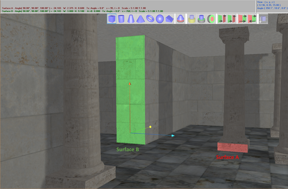 Centering Objects Objects can be centered in relation to other objects or surfaces. There are two menu options for this. Solid: Move A to B Center - Moves selected Object A to ObjectB center, icon Solid: Move A to Surface B Center - Moves selected Object A to Surface B center, icon Centering Solid A to Solid/Surface B Centering Surfaces One surface can be used to center and position another surface by selecting Surface A and B together. Surface: Move A's Center to B's Center - Moves selected Surface A to Surface B's center, icon Examples 1. Create a rectangle and select Surface A, B as shown 2. Use Move Surface A's Center to B's Center option 3/4. With rectangle object use CSG difference cut the beam flush at Surface B's center 5. Copy and Paste beam selected as Solid A, reflect across X axis, translate to left so end of each beam can be selected as Surface A, B 6. Use menu Surface: Move A's Center to B's Center or icon to put the two beams together on center. Aligning Surfaces Surfaces can aligned to X, Y, Z axis or in relation to each other using Align options in the Surface menu. Surface Alignment Features ● Align to ±X/±Y/±Z Axis - Make selected Surface A's parallel to specified Axis ● Align A to ±B - Make selected Surfaces A's parallel to Surface B ● Align and Set A to ±B - Make selected Surfaces A's parallel and co-planar to Surface B Example of Align to Y Axis feature Next is an example of how to apply Align and Set A to ±B menu features. Pillar shown below in rendering will be placed on right side of opening. First select Surface A/B from the scene Next choose Surface: Align and Set A to B from menu or choose icon Move view and select surface at base of pillar as shown as Surface A Next choose Surface: Align and Set A to -B from menu or choose icon Aligning and Positioning non-coplanar surfaces There are few ways to align and position objects/surfaces that are not coplanar. One way is by using Surface: Set A's nearest Vertex to Surface B feature. This will translate the object so that the nearest vertices of Surface A are placed on Surface B as shown here, Another way is to create and extrude a double sided surface to get 'side' planes of the polygon, planes from extruded surface can then be used to align other surfaces/objects.